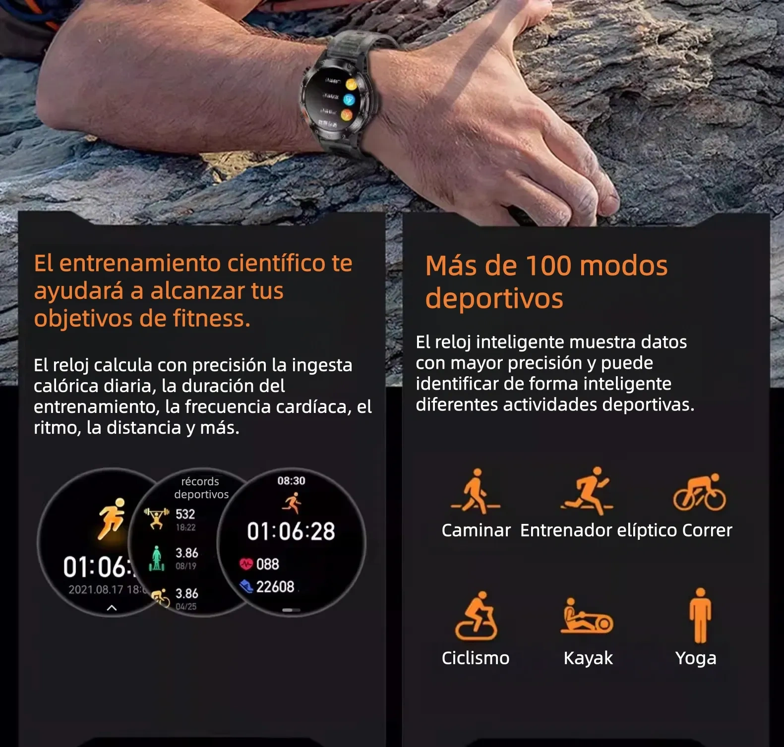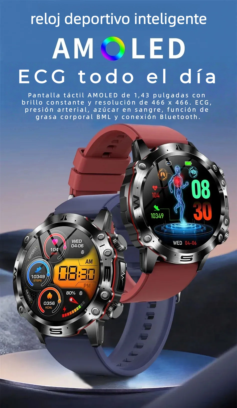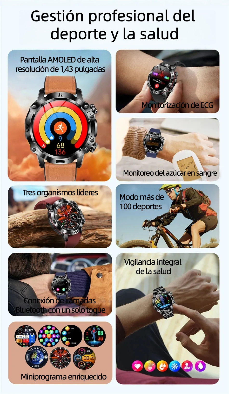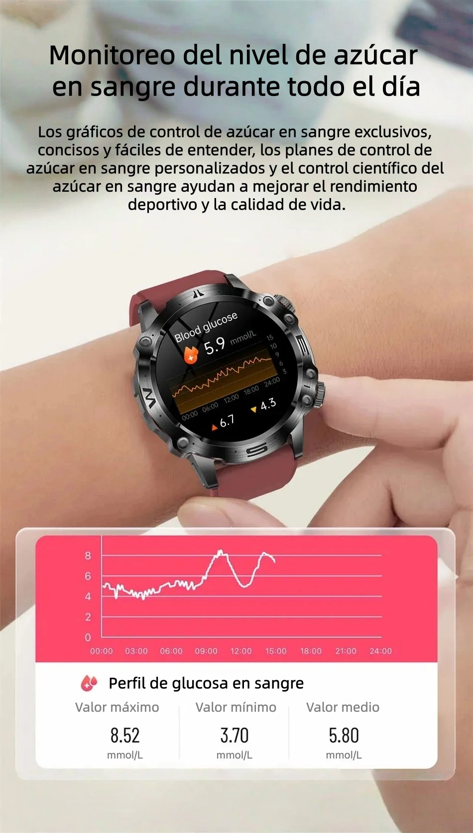 El mejor compañero de tu cuerpo: Medición confiable del nivel de azúcar en sangre, más de 100 modos deportivos Batería de larga duración, diseño resistente al agua Dondequiera que estés, siempre estará contigo
